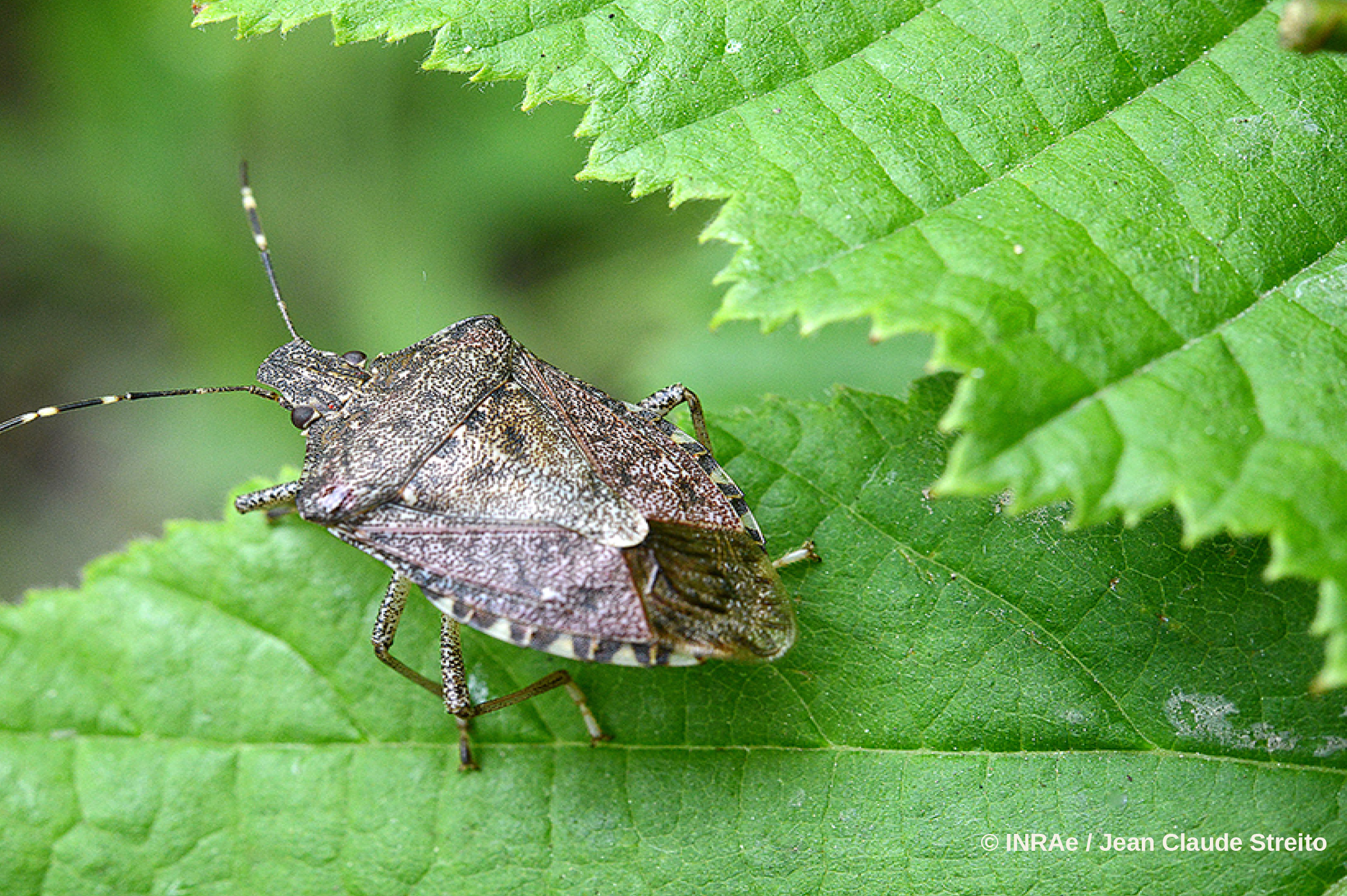 Communément appelée punaise diabolique, Halyomorpha halys est une espèce d’insecte hémiptère hétéroptères de la famille des Pentatomidae, originaire d’Asie de l’Est. Elle est présente désormais en France et c’est un ravageur invasif et très polyphage. Les dégâts touchent de nombreuses cultures hôtes : vergers (pomme,poire,kiwi,pêche,cerise...) et les cultures légumières (aubergine, tomate...).