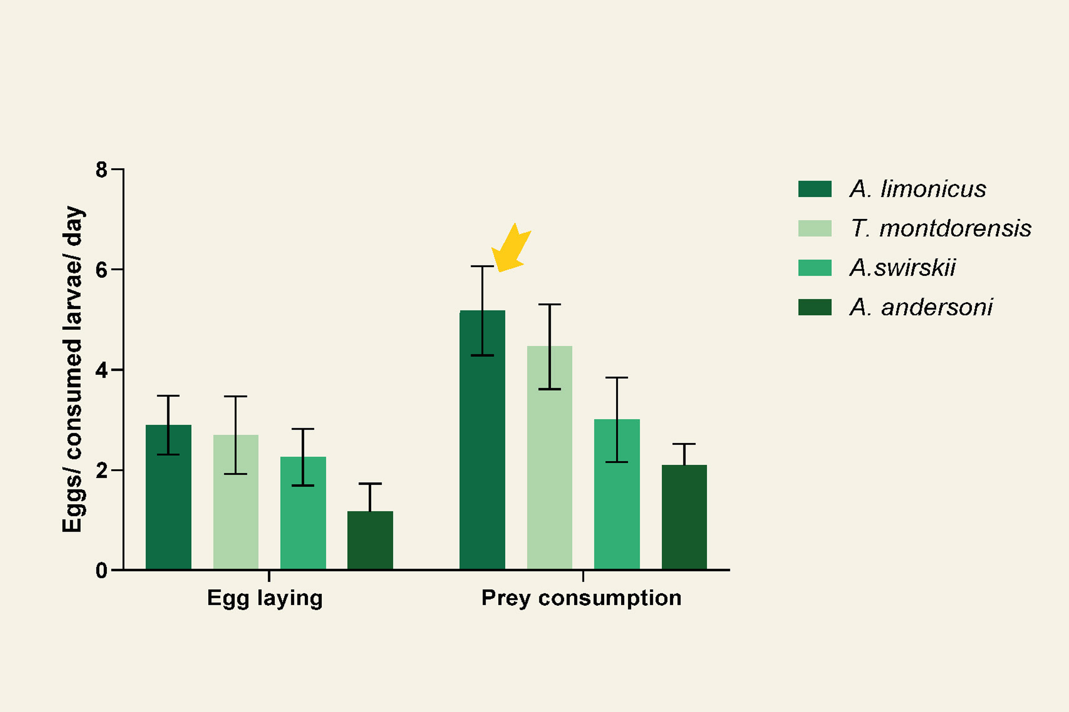 A. limonicus egg laying and predation capacity on T. parvispinus larvae
