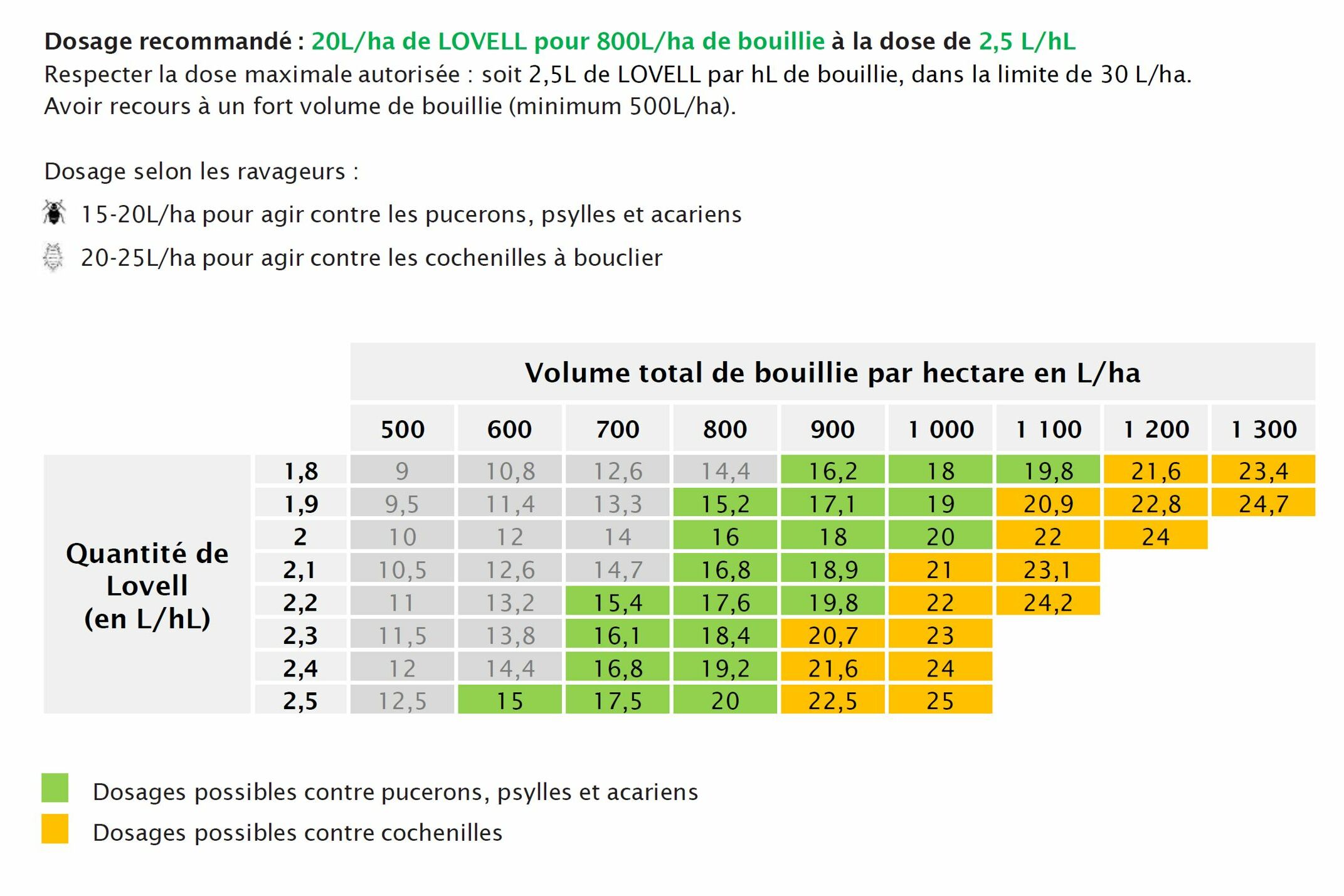 L’une des principales clés de succès dans l’usage de Lovell réside dans son dosage. Koppert a placé toute son expertise dans ce produit donc en voici les principaux conseils :