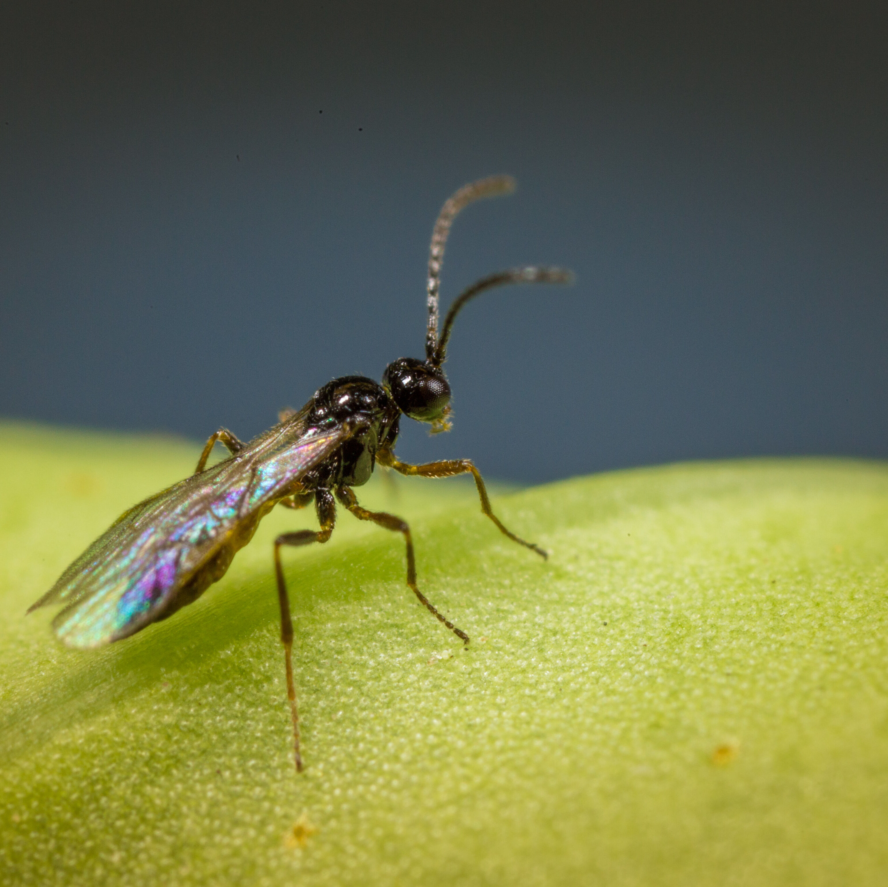 Les hyménoptères parasitoïdes adultes émergent des momies et les femelles pondent leurs œufs dans les pucerons. La génération suivante d’hyménoptères parasitoïdes se développe à l'intérieur du puceron, qui se durcit en une momie tannée. Le parasitoïde adulte émerge par une ouverture à l’arrière de la momie. Les premières momies sont observées dans les cultures environ 10 à 14 jours après la première introduction.