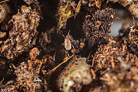 Œufs, larves et pupes de mouches sciarides ; pupes de thrips.