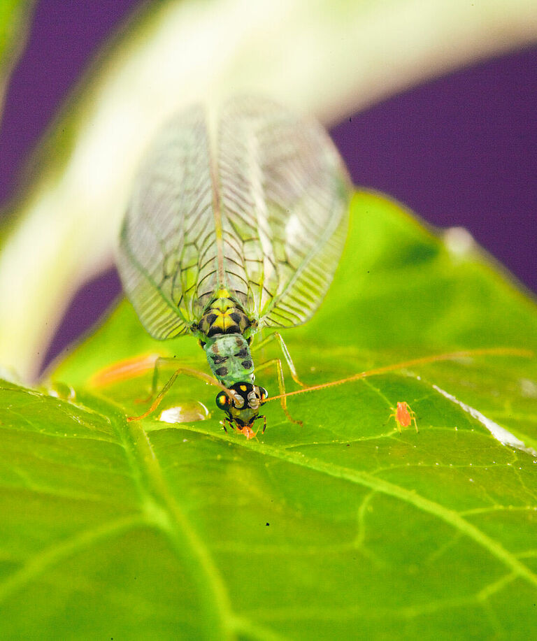 Les larves de chrysope, parfois appelées "lions des pucerons", sont particulièrement efficaces pour lutter contre les pucerons. Elles utilisent leurs fortes mâchoires pour saisir et consommer les pucerons à grande vitesse. Les larves sont très mobiles et recherchent activement les colonies de pucerons, ce qui permet de contrôler leurs populations. Outre les pucerons, les chrysopes contribuent également à la lutte contre les cochenilles, les thrips et les chenilles.