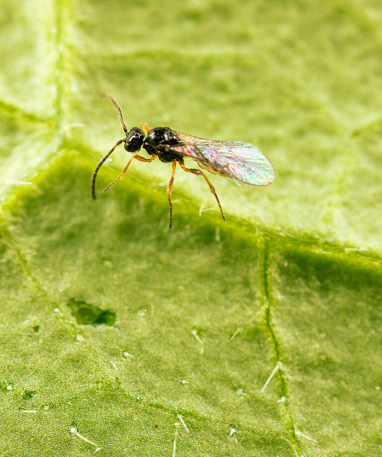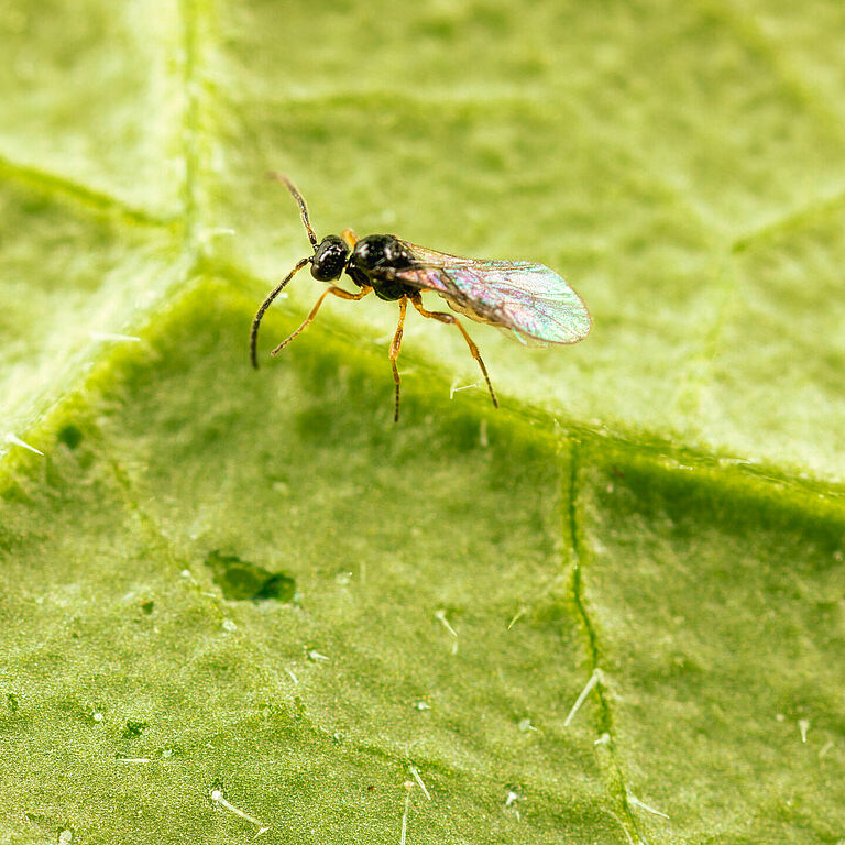 La guêpe parasitoïde Ephedrus cerasicola est disponible en bouteille (Aphiscout).