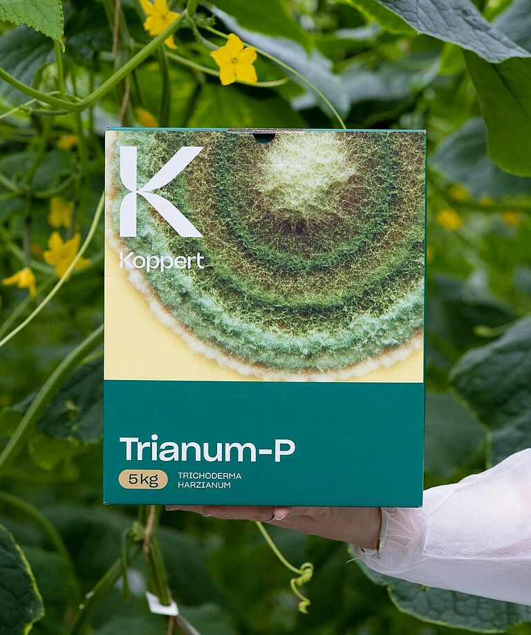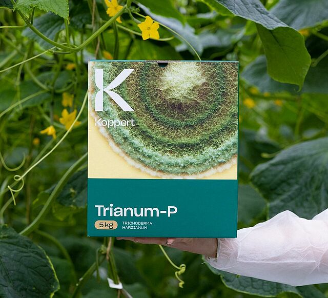 À Pour a commencé à utiliser le Trianum-G en 2020. À base du champignon Trichoderma harzianum T-22, le produit colonise le système racinaire de la plante et éloigne les champignons pathogènes des racines. Il met deux grammes de Trianium-G sur chaque tapis avant de sortir les nouvelles plantes dans des pots " duo " (deux plantes dans un cube de laine de roche).