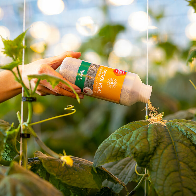 Tout a commencé il y a plus de 50 ans chez Koppert avec Spidex (Phytoseiulus persimilis). Dès le premier jour, cet acarien prédateur a constitué la base de notre biocontrôle du tétranyque tisserand. Avec le temps, il est devenu l'un des produits les plus importants pour nos producteurs. Fruit de nombreuses années de recherche et de mise au point, Spidex est maintenant disponible dans une nouvelle formulation, qui a un effet plus puissant dans la protection biologique contre le tétranyque tisserand : Spidex Vital