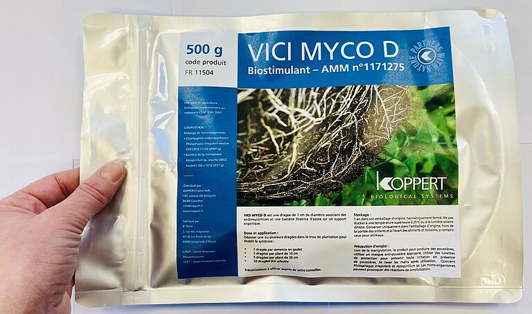 VICI MYCO D, produit 100% d’origine naturelle à base de microorganismes contribue à la bonne santé des végétaux lorsqu’il est appliqué dès la plantation et dans les cultures pour lesquelles la croissance des racines doit être stimulée. VICI MYCO D est un biostimulant microbien à base de mycorhizes (Glomus intraradices) et de bactéries fixatrices d’azote (Azospirillum sp.).