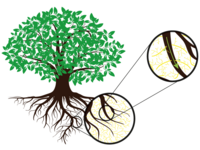 - Glomus intraradices entre en symbiose avec la racine et se nourrit de sucres complexes. En contrepartie, la mycorhize forme un réseau mycélien dense, véritable prolongement des racines. Ainsi la surface d’échange et l’absortion des nutriments du sol et de la plante est augmentée.